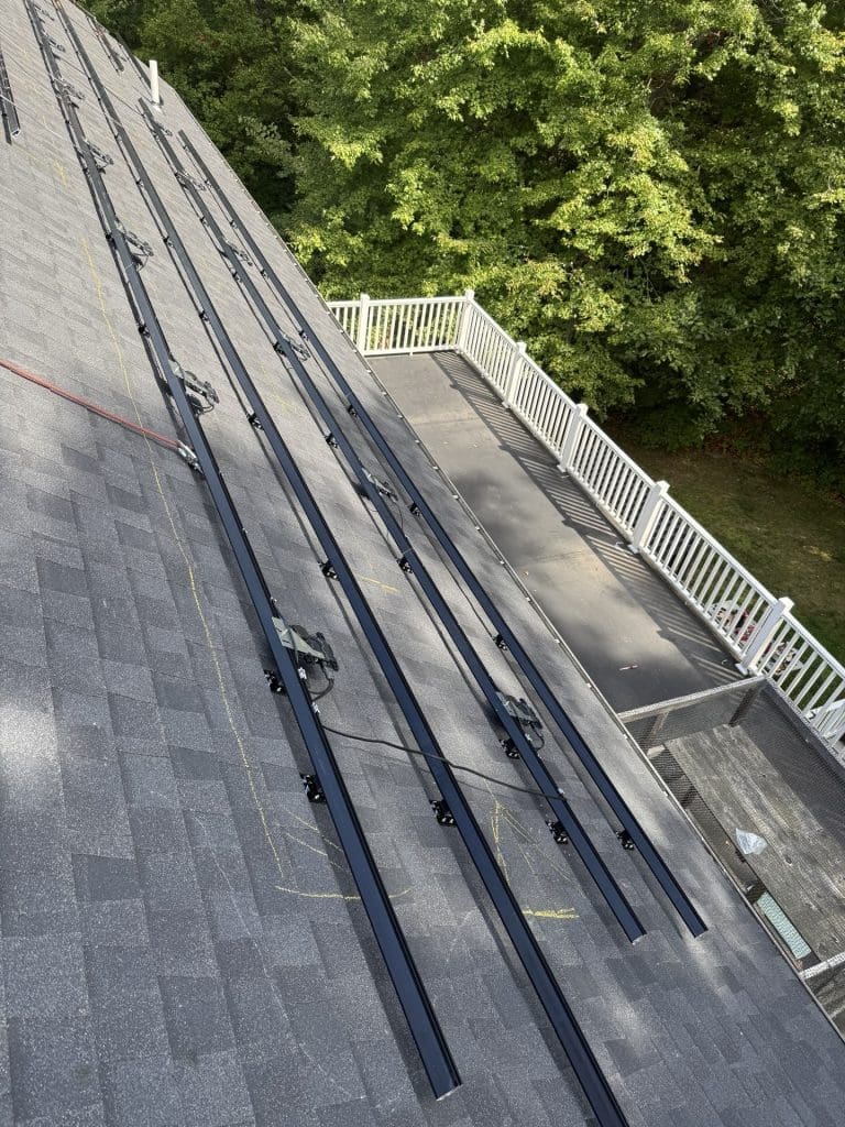 This project is a beautiful one. IronRidge rails with the slim slick IronRidgr UFO mounting bracket keeps everything looking smooth when looking at the roof from the ground. This racking really compliments the REC460 solar panels. This system conforms to the cities/states fire setbacks requirements. You’ll notice since so many solar panels went on this roof we surpassed 33% roof coverage and that resulted in needing 36” setbacks from the ridge and a 36” pathway from the gutter to ridge so fire fighters can easily maneuver around the roof in case of an emergency. It also helps us as well. This system perfectly covers this covers high electric bills. It’s a big house . This install looks great. Customer is happy with our work and maybe one day they will get a battery.